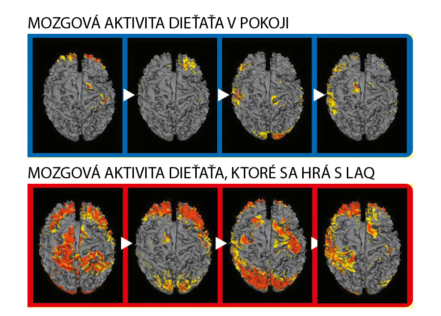 Výzkum profesora Dr. Moriho preukázal, že pri hre s LaQ sa súčasne aktivuje ľavá aj pravá mozgová hemisféra (viď obr. vpravo spodná časť). K tomuto javu dochádza len pri komplexných aktivitách a tou je aj napríklad hra s LaQ. Dieťa už len pri pohľade na dieliky premýšľa, čo chce poskladať, predstavuje – vizualizuje si model (tvar, farebnosť a účel) a k tomu ešte premýšľa aj nad postupom, ako ho poskladať. Pri hre s LaQ skladaní je stimulujúcim zvuk zacvakávania dielikov. Pri skladaní modelov LaQ sa deti učia logickej postupnosti, rozvíjajú technické myslenie, tvorivosť a schopnosť riešiť problémy, posilujú schopnosť koncentrácie – sústredenia sa – zamerania sa na činnosť.